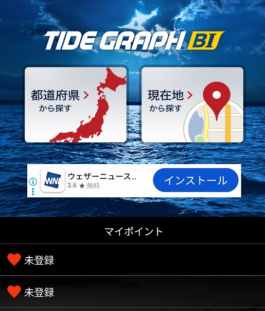 タイドグラフBIは、潮だけでなく気圧グラフも見られる万能アプリです。