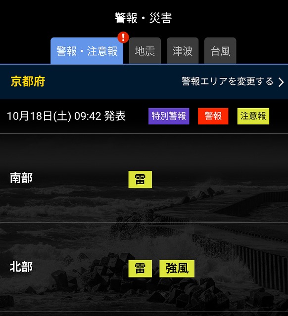 step7 設定から現在地を入れると、警報・災害情報も確認できます。