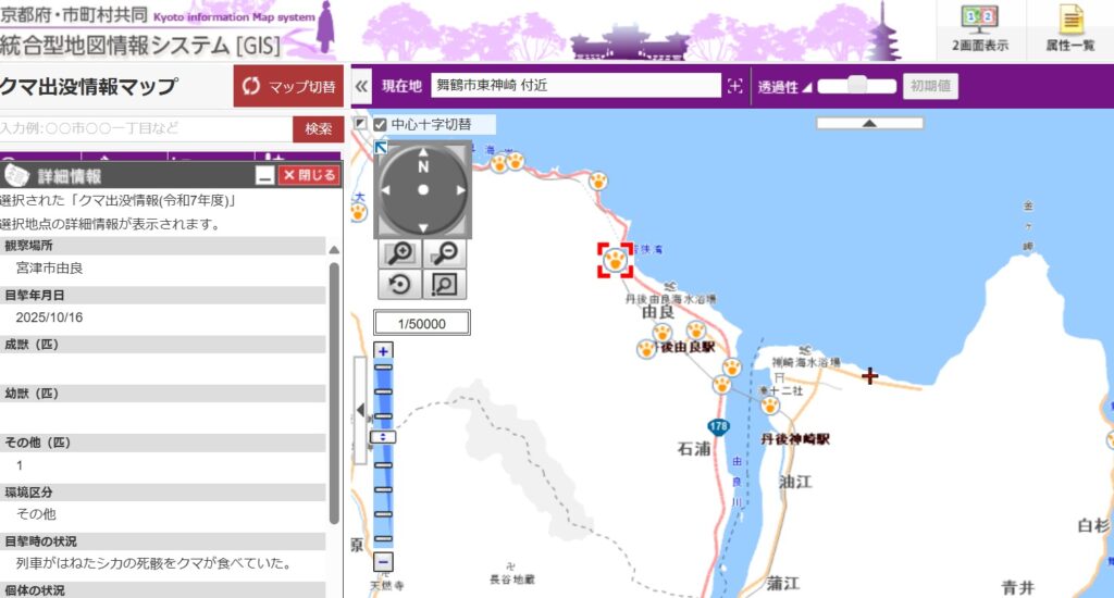 京都府では公式サイトでリアルタイムの出没マップが更新されています。