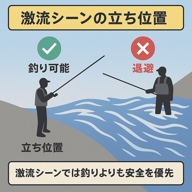 特に「雨後の増水」や「潮位の上げ止まり直前」は、激流パターンが成立しやすいタイミング。